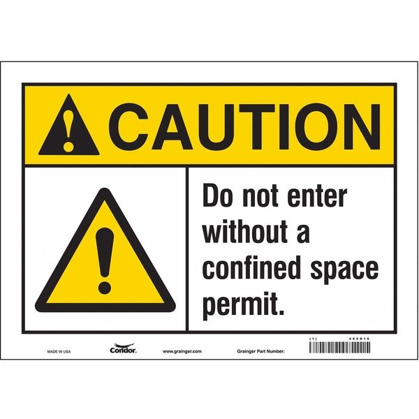 Safety Sign, Horizontal Rectangle, Number of Printed Sides 1, English, Sign Format ANSI/OSHA Format, Sign Legend Do Not Enter Without A Confined Space Permit., Sign Legend Background Color White, Sign Legend Style Symbol and Text