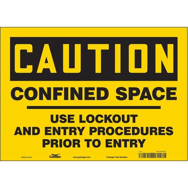 Safety Sign, Horizontal Rectangle, Number of Printed Sides 1, English, Sign Format Traditional OSHA, Sign Legend Confined Space Use Lockout And Entry Procedures Prior To Entry, Sign Legend Background Color Yellow, Sign Legend Style Text