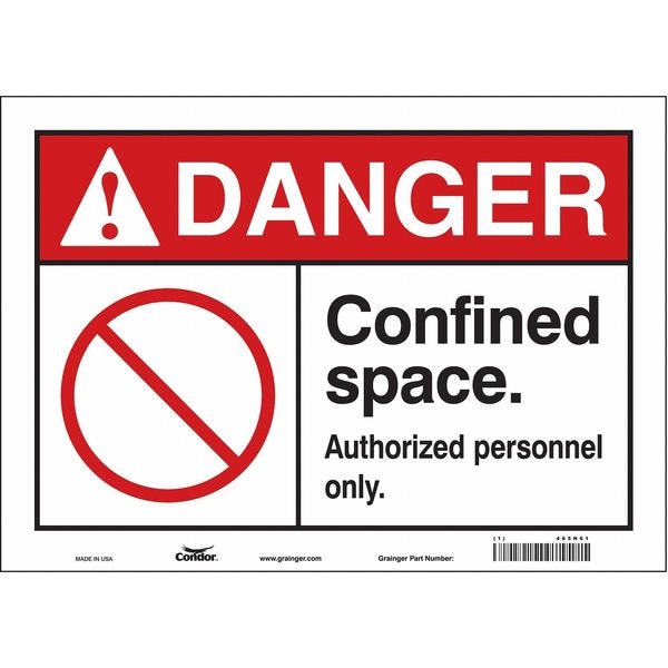 Safety Sign, Horizontal Rectangle, Number of Printed Sides 1, English, Sign Format ANSI/OSHA Format, Sign Legend Confined Space. Authorized Personnel Only., Sign Legend Background Color White, Sign Legend Style Symbol and Text