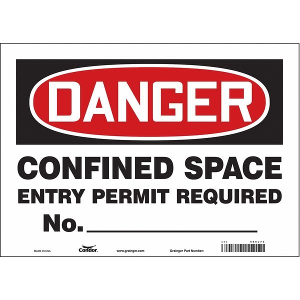 Safety Sign, Horizontal Rectangle, Number of Printed Sides 1, English, Sign Format Traditional OSHA, Sign Legend Confined Space Entry Permit Required No. _____, Sign Legend Background Color White, Sign Legend Style Text