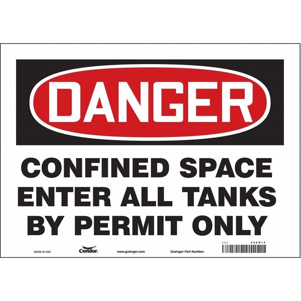 Safety Sign, Horizontal Rectangle, Number of Printed Sides 1, English, Sign Format Traditional OSHA, Sign Legend Confined Space Enter All Tanks By Permit Only, Sign Legend Background Color White, Sign Legend Style Text