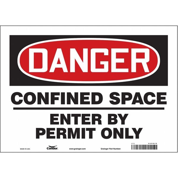 Safety Sign, Horizontal Rectangle, Number of Printed Sides 1, English, Sign Format Traditional OSHA, Sign Legend Confined Space Entry By Permit Only, Sign Legend Background Color White, Sign Legend Style Text