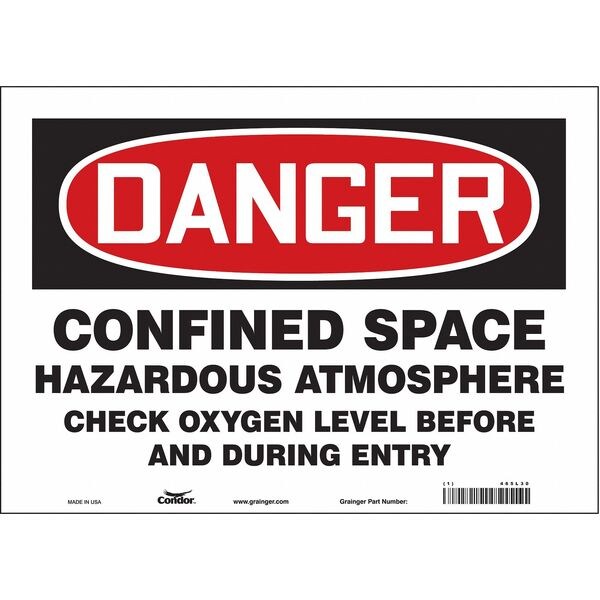 Safety Sign, Horizontal Rectangle, Number of Printed Sides 1, English, Sign Format Traditional OSHA, Sign Legend Confined Space Hazardous Atmosphere Check Oxygen Level Before And During Entry, Sign Legend Background Color White, Sign Legend Style Text