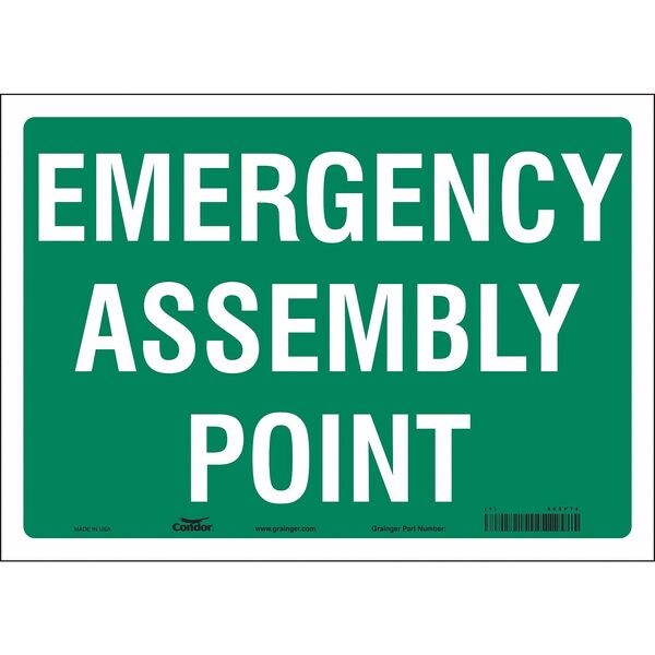 Safety Sign, Horizontal Rectangle, Number of Printed Sides 1, English, Sign Format Other Format, Sign Legend Emergency Assembly Point, Sign Legend Background Color Green, Sign Legend Style Text