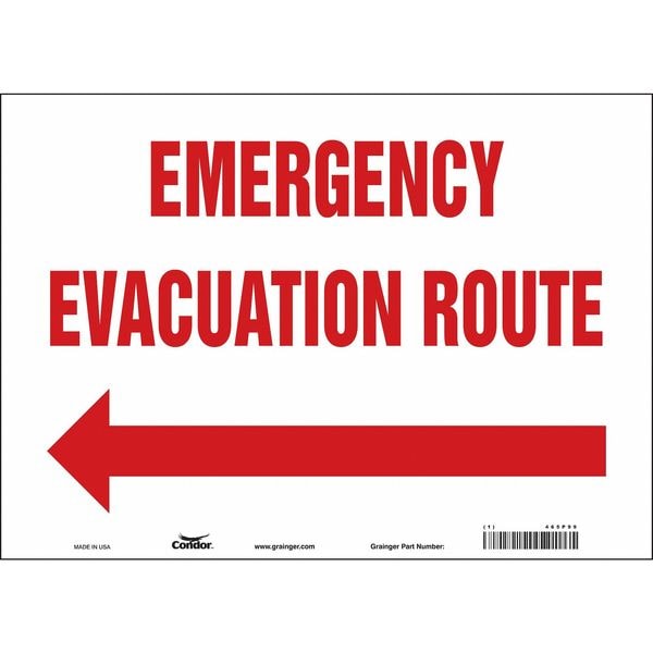 Safety Sign, Horizontal Rectangle, Number of Printed Sides 1, English, Sign Legend Emergency Evacuation Point, Sign Legend Background Color White, Sign Legend Style Symbol and Text