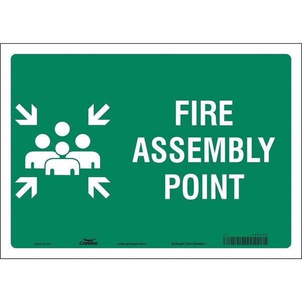Safety Sign, Horizontal Rectangle, Number of Printed Sides 1, English, Sign Format Other Format, Sign Legend Fire Assembly Point, Sign Legend Background Color Green, Sign Legend Style Symbol and Text