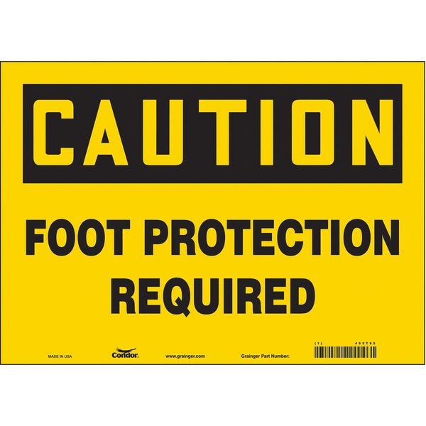 Safety Sign, Horizontal Rectangle, Number of Printed Sides 1, English, Sign Format Traditional OSHA, Sign Legend Foot Protection Required, Sign Legend Background Color Yellow, Sign Legend Style Text