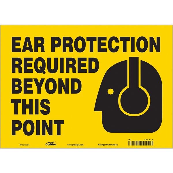 Safety Sign, Horizontal Rectangle, Number of Printed Sides 1, English, Sign Format Other Format, Sign Legend Ear Protection Required Beyond This Point, Sign Legend Background Color Yellow, Sign Legend Style Symbol and Text