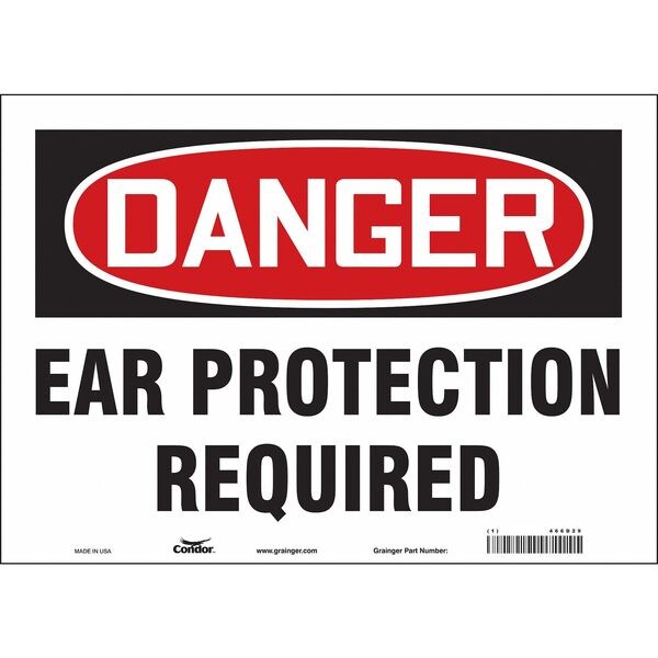 Safety Sign, Horizontal Rectangle, Number of Printed Sides 1, English, Sign Format Traditional OSHA, Sign Legend Ear Protection Required, Sign Legend Background Color White, Sign Legend Style Text