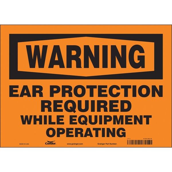 Safety Sign, Horizontal Rectangle, Number of Printed Sides 1, English, Sign Format Traditional OSHA, Sign Legend Ear Protection Required While Equipment Operating, Sign Legend Background Color Orange, Sign Legend Style Text