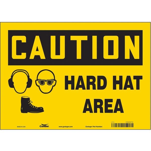 Safety Sign, Horizontal Rectangle, Number of Printed Sides 1, English, Sign Format Traditional OSHA, Sign Legend Hard Hat Area, Sign Legend Background Color Yellow, Sign Legend Style Symbol and Text
