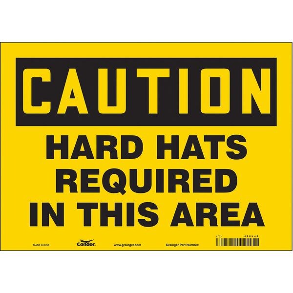 Safety Sign, Horizontal Rectangle, Number of Printed Sides 1, English, Sign Format Traditional OSHA, Sign Legend Hard Hats Required In This Area, Sign Legend Background Color Yellow, Sign Legend Style Text