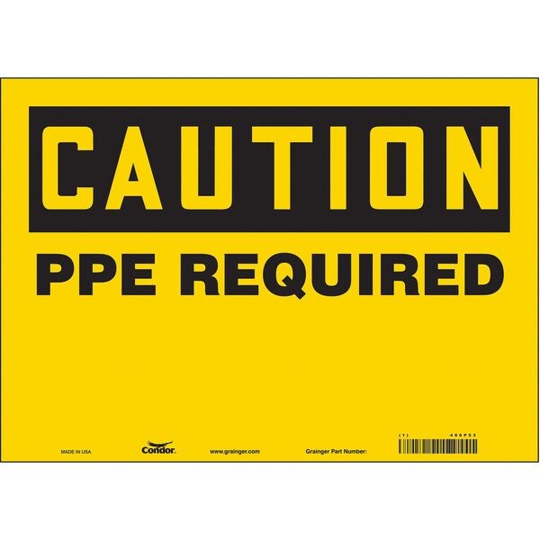 Safety Sign, Horizontal Rectangle, Number of Printed Sides 1, English, Sign Format Traditional OSHA, Sign Legend PPE Required, Sign Legend Background Color Yellow, Sign Legend Style Text