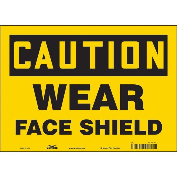 Safety Sign, Horizontal Rectangle, Number of Printed Sides 1, English, Sign Format Traditional OSHA, Sign Legend Wear Face Shield, Sign Legend Background Color Yellow, Sign Legend Style Text