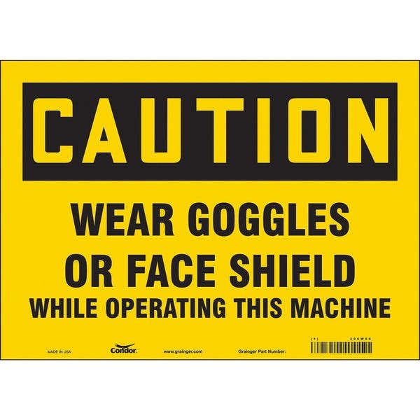 Safety Sign, Horizontal Rectangle, Number of Printed Sides 1, English, Sign Format Traditional OSHA, Sign Legend Wear Goggles Or Face Shield While Operating This Machine, Sign Legend Background Color Yellow, Sign Legend Style Text