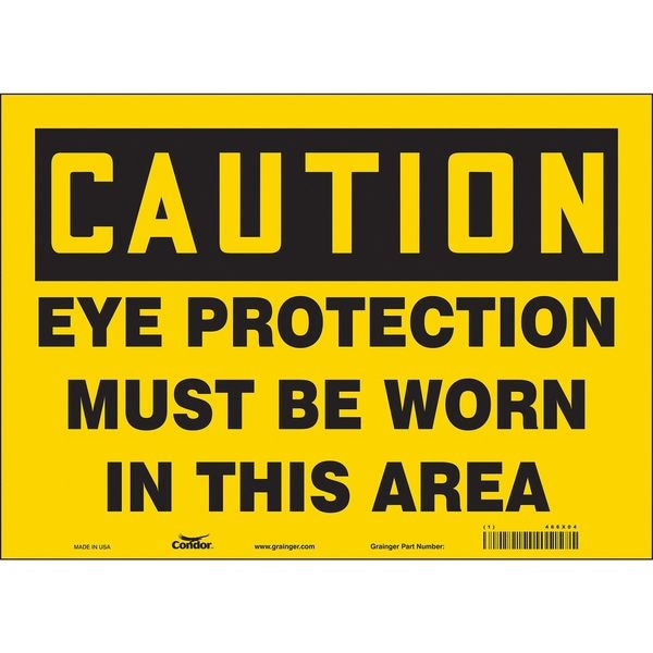 Safety Sign, Horizontal Rectangle, Number of Printed Sides 1, English, Sign Format Traditional OSHA, Sign Legend Eye Protection Must Be Worn In This Area, Sign Legend Background Color Yellow, Sign Legend Style Text