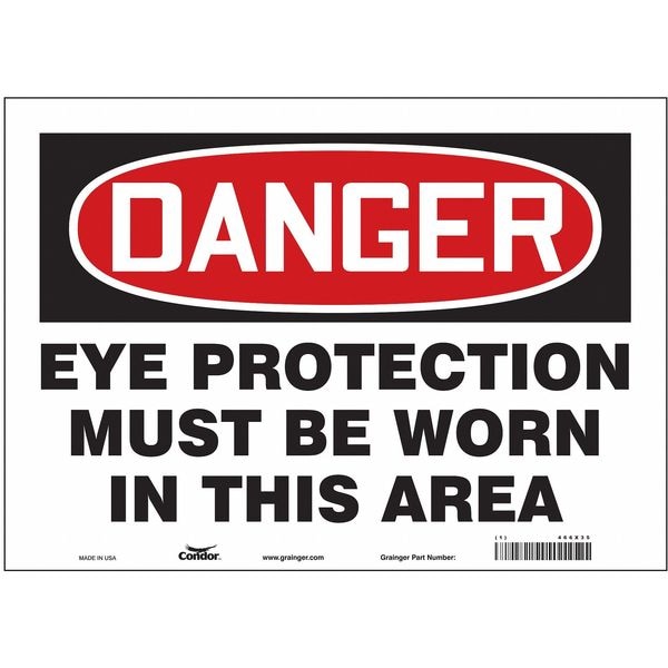 Safety Sign, Horizontal Rectangle, Number of Printed Sides 1, English, Sign Format Traditional OSHA, Sign Legend Eye Protection Must Be Worn In This Area, Sign Legend Background Color White, Sign Legend Style Text