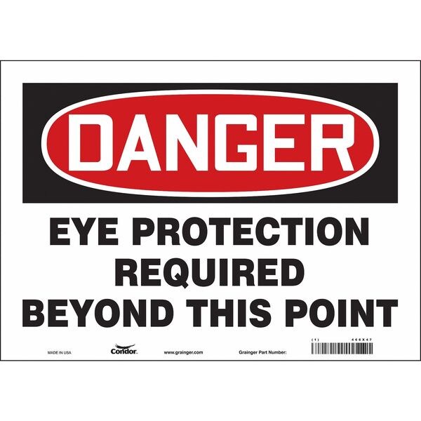 Safety Sign, Horizontal Rectangle, Number of Printed Sides 1, English, Sign Format Traditional OSHA, Sign Legend Eye Protection Required Beyond This Point, Sign Legend Background Color White, Sign Legend Style Text