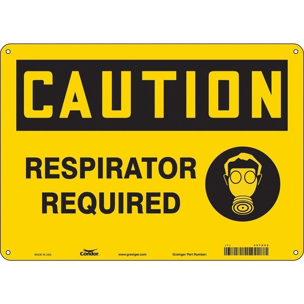 Safety Sign, Horizontal Rectangle, Number of Printed Sides 1, English, Sign Format Traditional OSHA, Sign Legend Respirator Required, Sign Legend Background Color Yellow, Sign Legend Style Symbol and Text