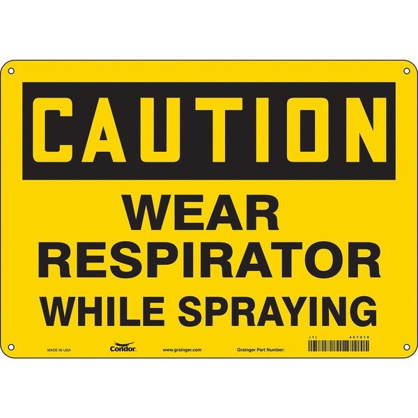 Safety Sign, Horizontal Rectangle, Number of Printed Sides 1, English, Sign Format Traditional OSHA, Sign Legend Wear Respirator While Spraying, Sign Legend Background Color Yellow, Sign Legend Style Text