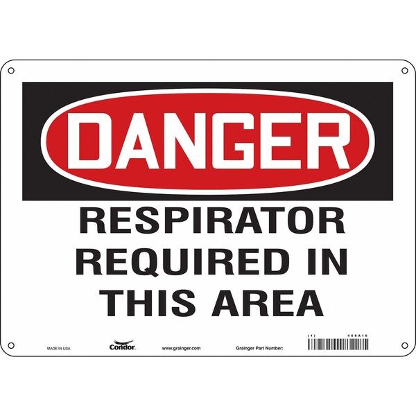 Safety Sign, Horizontal Rectangle, Number of Printed Sides 1, English, Sign Format Traditional OSHA, Sign Legend Respirator Required In This Area, Sign Legend Background Color White, Sign Legend Style Text