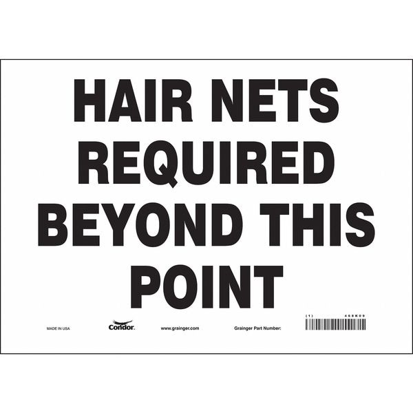 Safety Sign, Horizontal Rectangle, Number of Printed Sides 1, English, Sign Format Other Format, Sign Legend Hair Nets Required Beyond This Point, Sign Legend Background Color White, Sign Legend Style Text