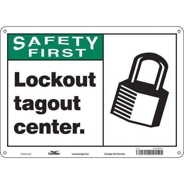 Safety Sign, Horizontal Rectangle, Number of Printed Sides 1, English, Sign Format ANSI/OSHA Format, Sign Legend Lockout Tagout Center., Sign Legend Background Color White, Sign Legend Style Symbol and Text