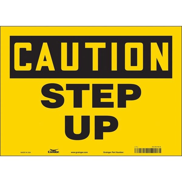Safety Sign, Horizontal Rectangle, Number of Printed Sides 1, English, Sign Format Traditional OSHA, Sign Legend Step Up, Sign Legend Background Color Yellow, Sign Legend Style Text