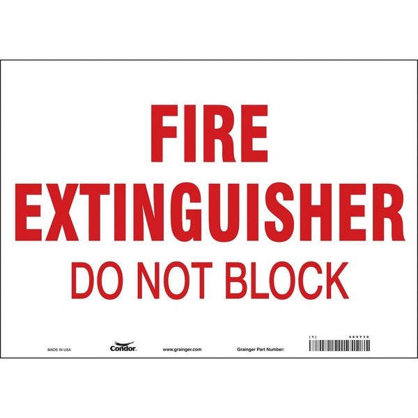 Safety Sign, Horizontal Rectangle, Number of Printed Sides 1, English, Sign Legend Fire Extinguisher Do Not Block, Sign Legend Background Color White, Sign Legend Style Text