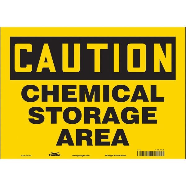 Safety Sign, Horizontal Rectangle, Number of Printed Sides 1, English, Sign Format Traditional OSHA, Sign Legend Chemical Storage Area, Sign Legend Background Color Yellow, Sign Legend Style Text