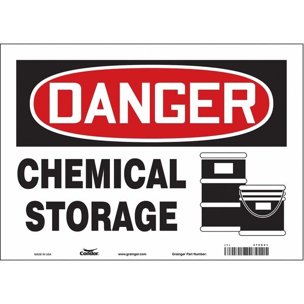 Safety Sign, Horizontal Rectangle, Number of Printed Sides 1, English, Sign Format Traditional OSHA, Sign Legend Chemical Storage, Sign Legend Background Color White, Sign Legend Style Symbol and Text