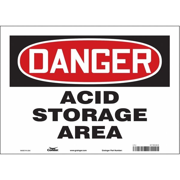 Safety Sign, Horizontal Rectangle, Number of Printed Sides 1, English, Sign Format Traditional OSHA, Sign Legend Acid Storage Area, Sign Legend Background Color White, Sign Legend Style Text