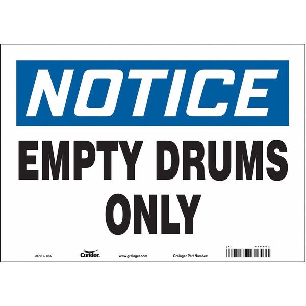 Safety Sign, Horizontal Rectangle, Number of Printed Sides 1, English, Sign Format Traditional OSHA, Sign Legend Empty Drums Only, Sign Legend Background Color White, Sign Legend Style Text