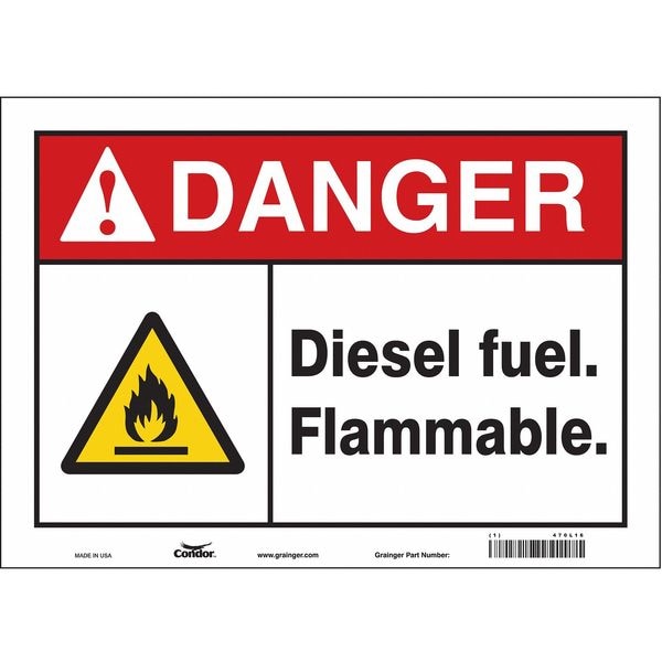 Safety Sign, Horizontal Rectangle, Number of Printed Sides 1, English, Sign Format ANSI/OSHA Format, Sign Legend Diesel Fuel. Flammable., Sign Legend Background Color White, Sign Legend Style Symbol and Text