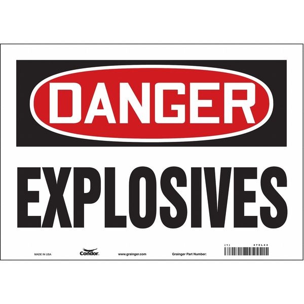 Safety Sign, Horizontal Rectangle, Number of Printed Sides 1, English, Sign Format Traditional OSHA, Sign Legend Explosives, Sign Legend Background Color White, Sign Legend Style Text