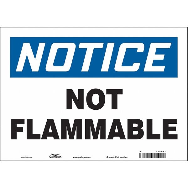 Safety Sign, Horizontal Rectangle, Number of Printed Sides 1, English, Sign Format Traditional OSHA, Sign Legend Not Flammable, Sign Legend Background Color White, Sign Legend Style Text