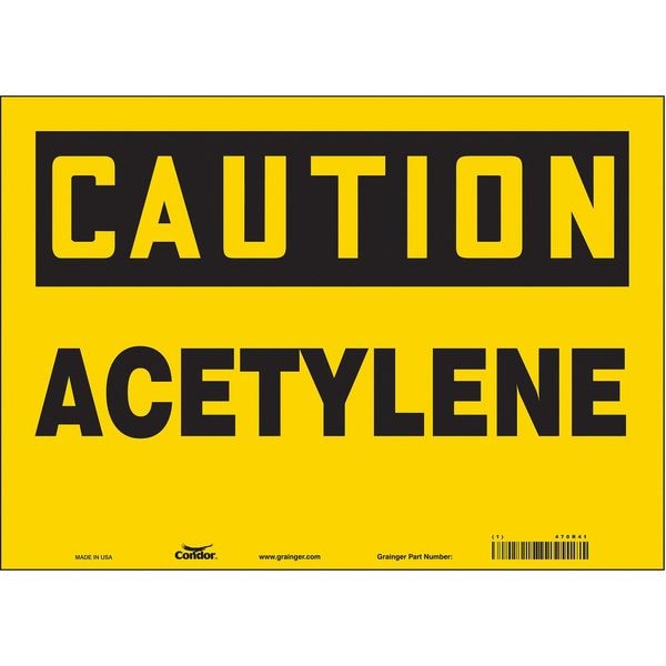 Safety Sign, Horizontal Rectangle, Number of Printed Sides 1, English, Sign Format Traditional OSHA, Sign Legend Acetylene, Sign Legend Background Color Yellow, Sign Legend Style Text