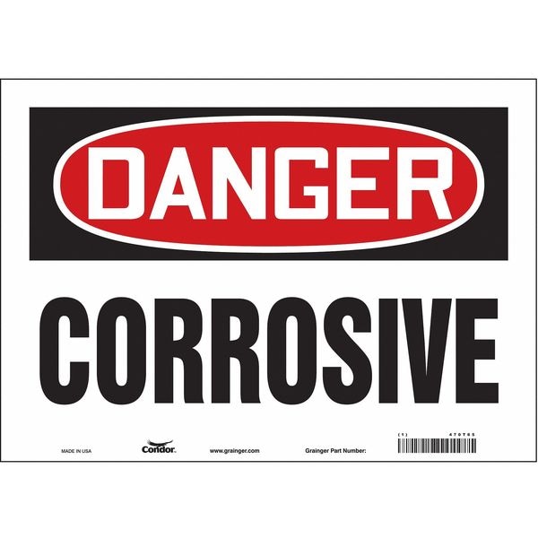 Safety Sign, Horizontal Rectangle, Number of Printed Sides 1, English, Sign Format Traditional OSHA, Sign Legend Corrosive, Sign Legend Background Color White, Sign Legend Style Text