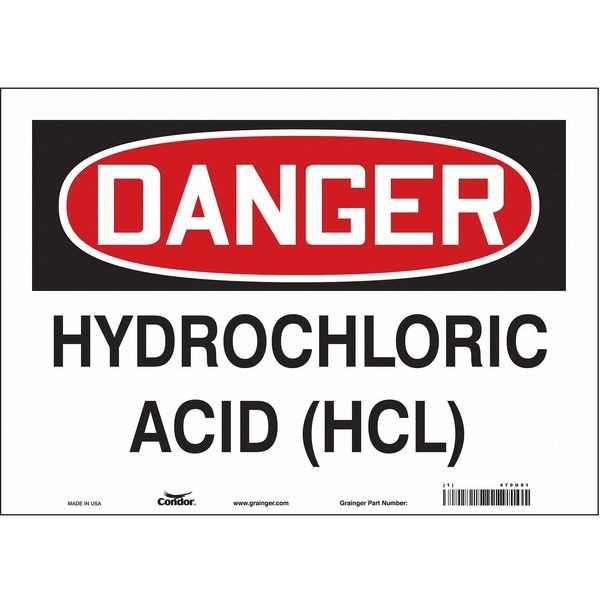 Safety Sign, Horizontal Rectangle, Number of Printed Sides 1, English, Sign Format Traditional OSHA, Sign Legend Hydrochloric Acid (Hcl), Sign Legend Background Color White, Sign Legend Style Text