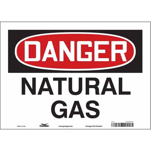 Safety Sign, Horizontal Rectangle, Number of Printed Sides 1, English, Sign Format Traditional OSHA, Sign Legend Natural Gas, Sign Legend Background Color White, Sign Legend Style Text