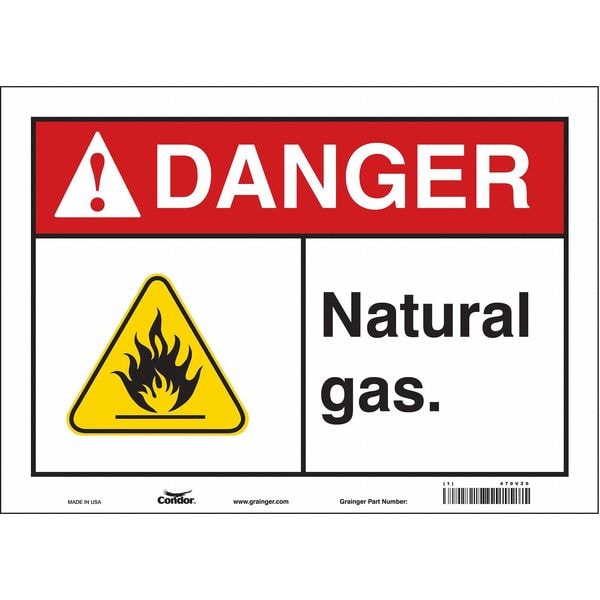 Safety Sign, Horizontal Rectangle, Number of Printed Sides 1, English, Sign Format ANSI/OSHA Format, Sign Legend Natural Gas., Sign Legend Background Color White, Sign Legend Style Symbol and Text