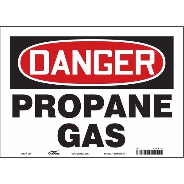 Safety Sign, Horizontal Rectangle, Number of Printed Sides 1, English, Sign Format Traditional OSHA, Sign Legend Propane Gas, Sign Legend Background Color White, Sign Legend Style Text