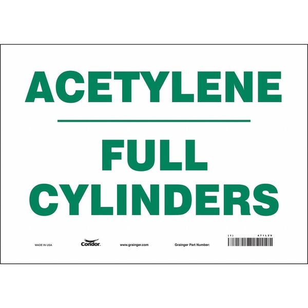 Safety Sign, Horizontal Rectangle, Number of Printed Sides 1, English, Sign Format Other Format, Sign Legend Acetylene Full Cylinders, Sign Legend Background Color White, Sign Legend Style Text