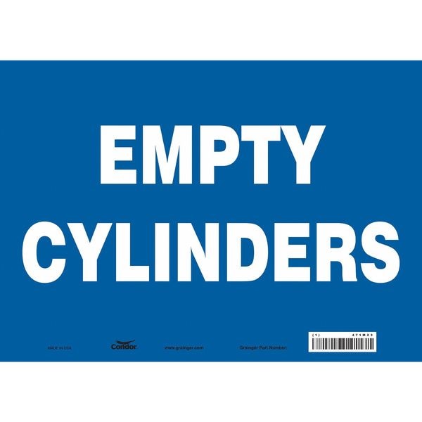 Safety Sign, Horizontal Rectangle, Number of Printed Sides 1, English, Sign Format Other Format, Sign Legend Empty Cylinders, Sign Legend Background Color Blue, Sign Legend Style Text