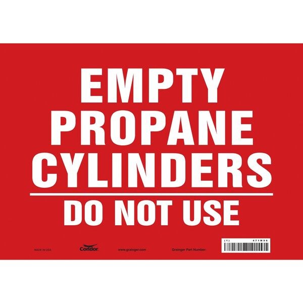 Safety Sign, Horizontal Rectangle, Number of Printed Sides 1, English, Sign Format Other Format, Sign Legend Empty Propane Cylinders Do Not Use, Sign Legend Background Color Red, Sign Legend Style Text