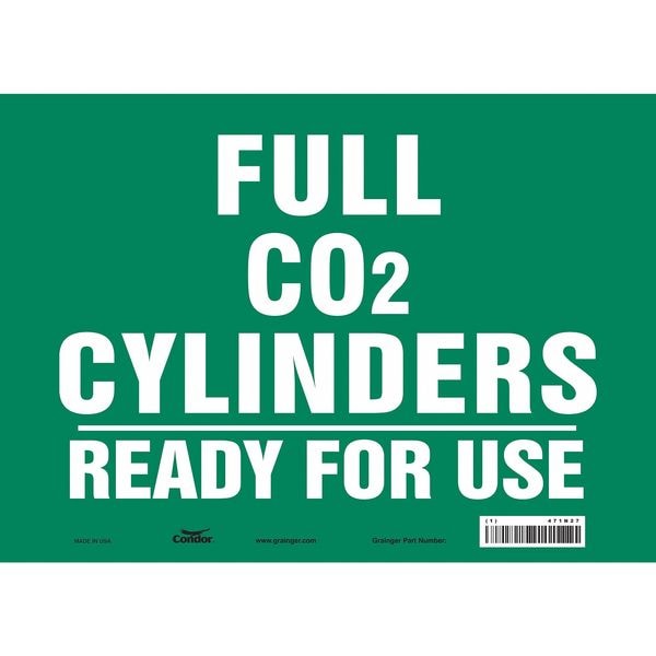 Safety Sign, Horizontal Rectangle, Number of Printed Sides 1, English, Sign Format Other Format, Sign Legend Full Co2 Cylinders Ready For Use, Sign Legend Background Color Green, Sign Legend Style Text
