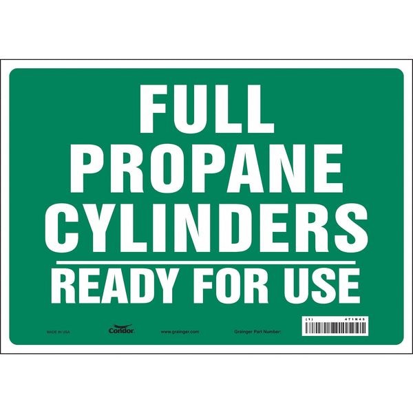 Safety Sign, Horizontal Rectangle, Number of Printed Sides 1, English, Sign Format Other Format, Sign Legend Full Propane Cylinders Ready For Use, Sign Legend Background Color Green, Sign Legend Style Text