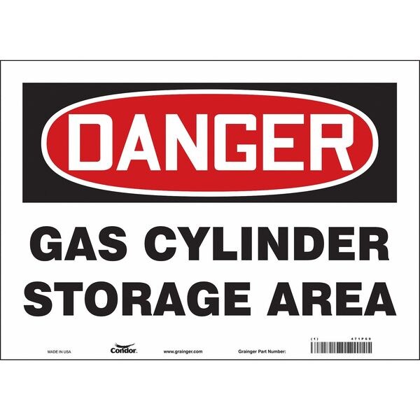 Safety Sign, Horizontal Rectangle, Number of Printed Sides 1, English, Sign Format Traditional OSHA, Sign Legend Gas Cylinder Storage Area, Sign Legend Background Color White, Sign Legend Style Text