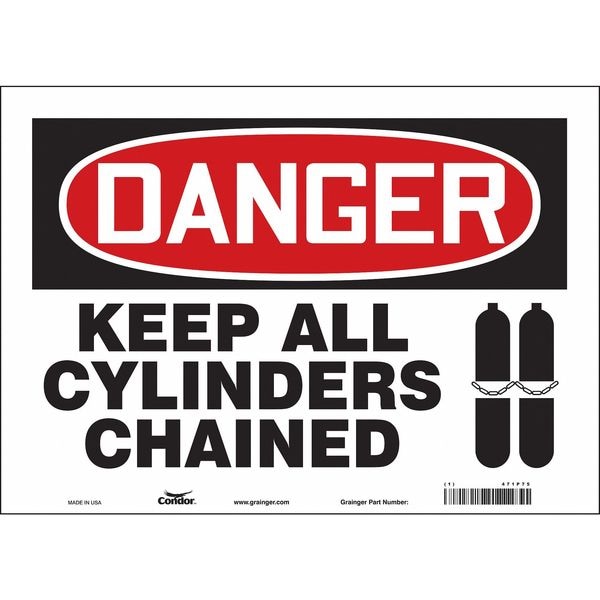 Safety Sign, Horizontal Rectangle, Number of Printed Sides 1, English, Sign Format Traditional OSHA, Sign Legend Keep All Cylinders Chained, Sign Legend Background Color White, Sign Legend Style Symbol and Text