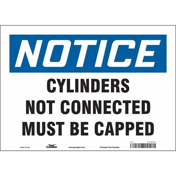 Safety Sign, Horizontal Rectangle, Number of Printed Sides 1, English, Sign Format Traditional OSHA, Sign Legend Cylinders Not Connected Must Be Capped, Sign Legend Background Color White, Sign Legend Style Text